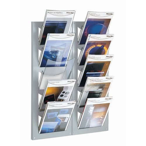| Varenavn | Brosjyrestativ, 5 rom A4, Antall rom: 5, Farge: Grå, Totalbredde: 30 cm, Totalhøyde: 90 cm, Totaldybde: 17 cm |
