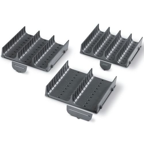 Kompakte skuffebunner har et rutenett som gjør det enkelt å sette inn de medfølgende skilleveggene.