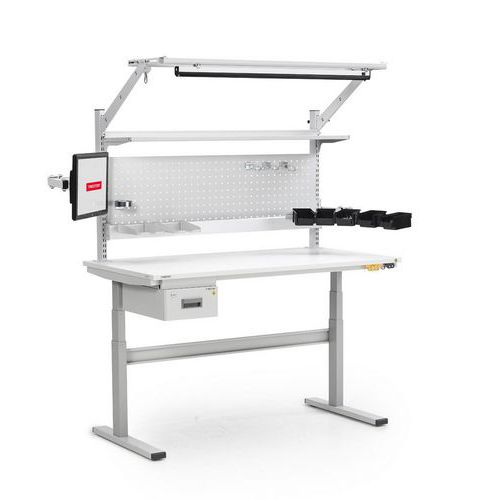 - Høyde- og dybdejusterbart C-profilstativ som monteres på stolpene og brukes til belysning og elektroverktøy.