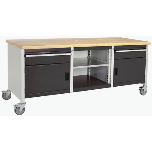 Cubio mobil arbeidsbenk – topp i bøk, 2 dører, skuff og hylle – Bott
