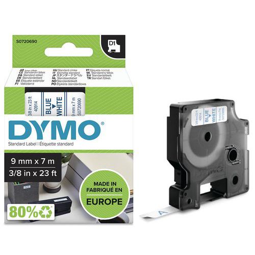 | Varenavn | D1 tapekassett, bredde 9 mm – Dymo, Bakgrunn, farge: Hvit, Type: S0720690, Bånd, lengde: 7 m |