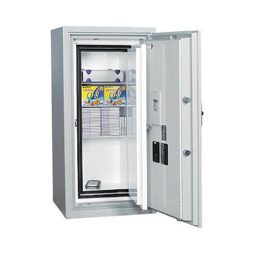 Nordic Dataskap med høyeste brannbeskyttelse. Verdibeskyttende skap til brann- og tyverisikker oppbevaring av datamedier. Alle datamedier som f.eks. disketter. CD-ROM, videobånd, DVD-medier og mikrofilm er svært følsomme overfor varme og fuktighet. Skapene er testet og oppfyller med god margin kravene som stilles til dataskap. Fåes i to størrelser. Som standard med nøkkellås med 2 nøkler og elektronisk kodelåssystem. Riktig skap til sikker dataoppbevaring. Innebygd innbruddsalarm. Brann-, fall- og sjokktest i henhold til internasjonale normer