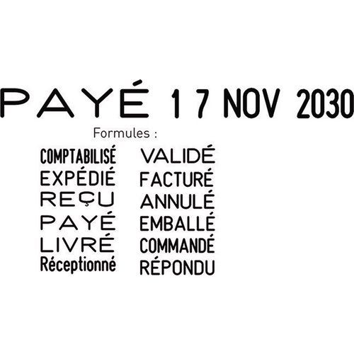 | Varenavn | Datostempel, Antall rader: 1, Avtrykk, bredde: 4 mm, Avtrykk, lengde: 48 mm, Blekk, farge: Svart |