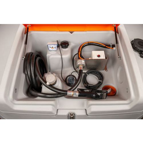 - Dieseltank Cube Basic er utstyrt med elektrisk pumpe, 230 V.