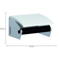 | Varenavn | Dispenser toalettpapir metall, Farge: Hvit, Høyde: 8 cm, Bredde: 13 cm, Dybde: 9.5 cm, Materialer: Metall |