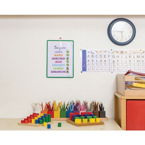 Praktisk hengelomme – en perfekt og lett tilgjengelig løsning for informasjon som trengs daglig. Fargerik og antirefleksbehandlet ramme, gjennomsiktig lomme. Festeøye av metall for veggfeste. Praktisk løsning for å vise frem og ramme inn alle typer A3-dokumenter. Perfekt for visning i bedriften, på informasjonssteder, offentlige steder, i korridorer, lobbyer. For visning av permanente dokumenter (åpningstider, regler, sikkerhet, evakuering, hygiene ...) Laget i EU Garanti (år) : 10 år