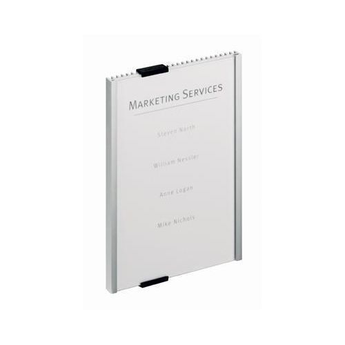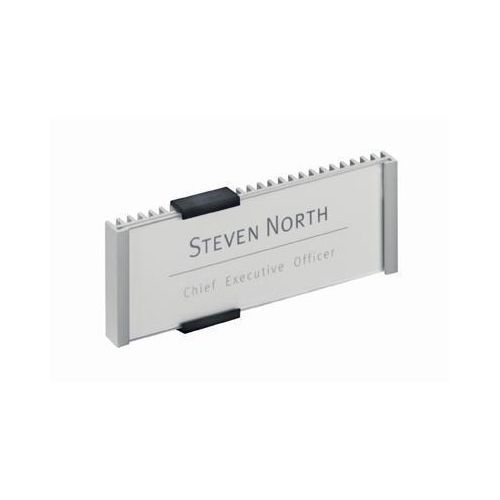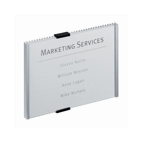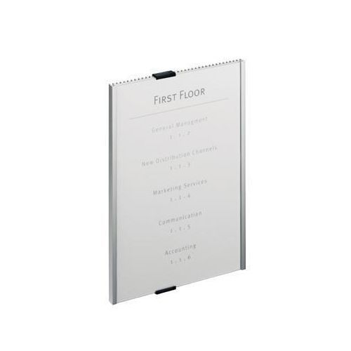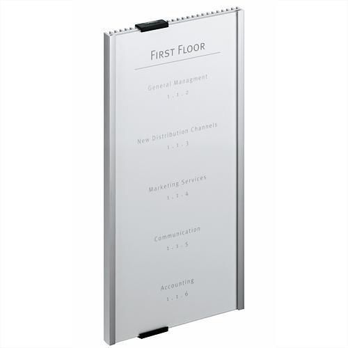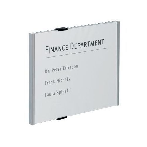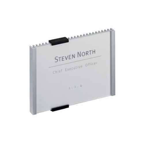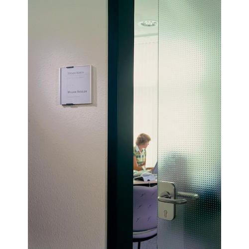 - Dørskilt av aluminium som festes med vedlagte selvklebende festeputer eller skruer.