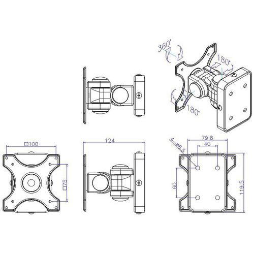 | Varenavn | Dreibar veggbrakett for skjerm, Maksimal last: 15 kg, Type festing: Vegg, Farge: Svart |