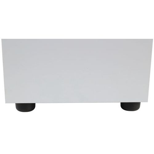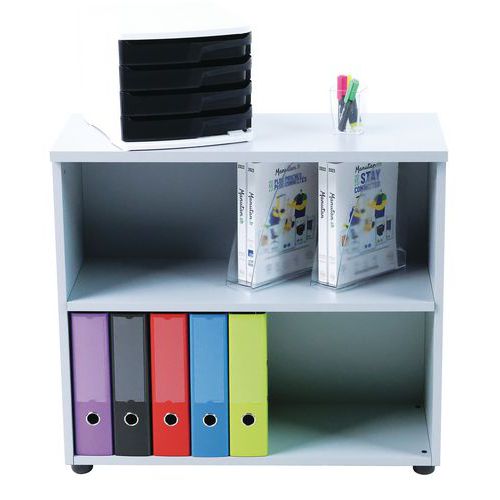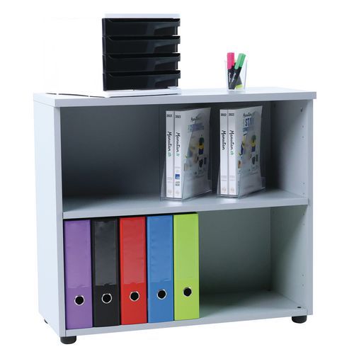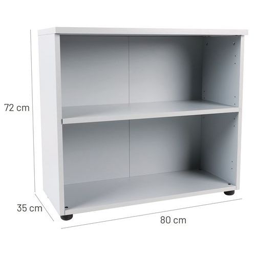 Mulighet for egentilpasning med de justerbare hyllene. Bibliotek med svarte polstrede føtter.