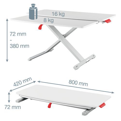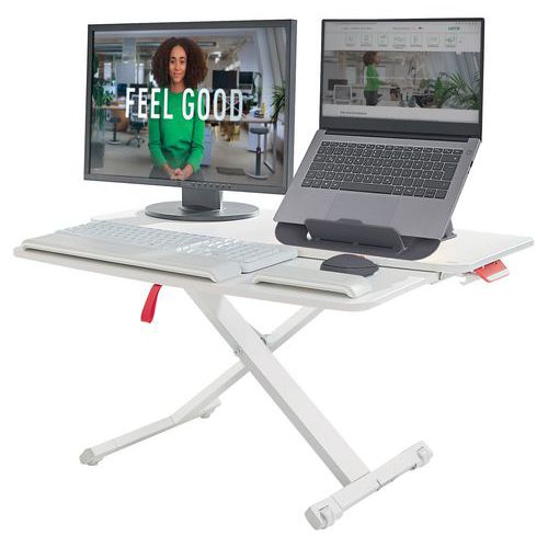 Ergo hev- og senkbart skrivebordsstativ med tastaturplate, Maksimal last: 24 kg, Maksimal høyde: 380 mm