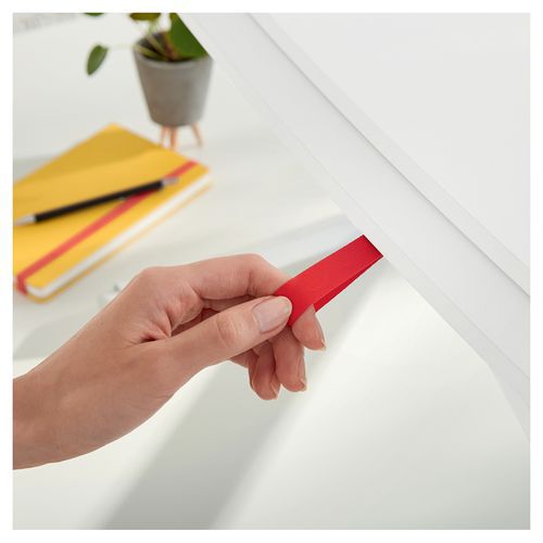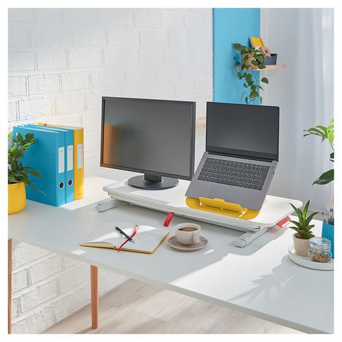 Med sine kompakte mål på 800 x 420 mm sparer det plass samtidig som det rommer både skjerm og laptop på hovedflaten.