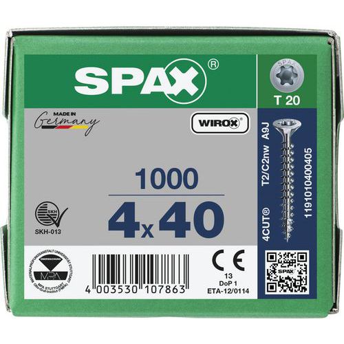| Varenavn | Eske med universalskruer T-Star Plus forsenket hode TX Ø, Materiale: Stål, Gevind Ø: 4 mm |