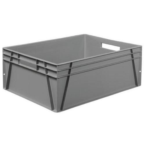 Plastbokser som kan stables egner seg til transport av gods innen en rekke ulike industrier og byr på muligheter for en effektiv materialhåndtering. Mengden størrelser og utførelser innebærer at de kan skreddersys til varestrømmen i de fleste virksomheter. De er også svært populære innen bilindustrien. De jevne indre flatene og de avrundede hjørnene gjør disse boksene usedvanlig lette å rengjøre. Boksenes utforming gir stabilitet under transporten, samtidig som de rette sidene og modulstørrelsene forenkler stabling og lagring. Maksimal last (kg) : 120 kg