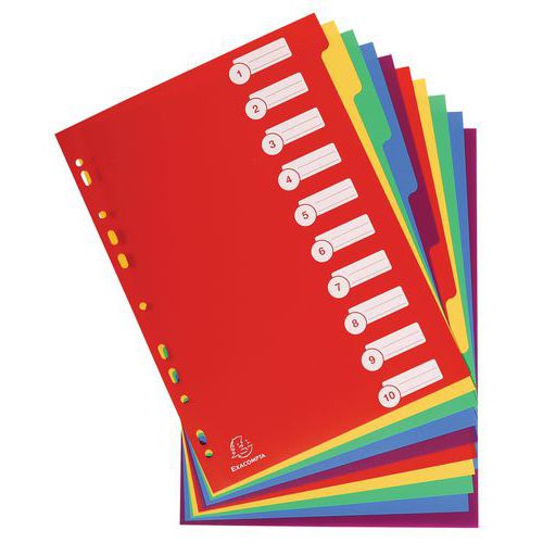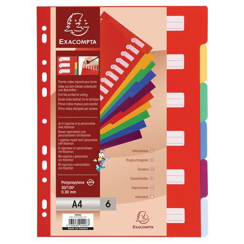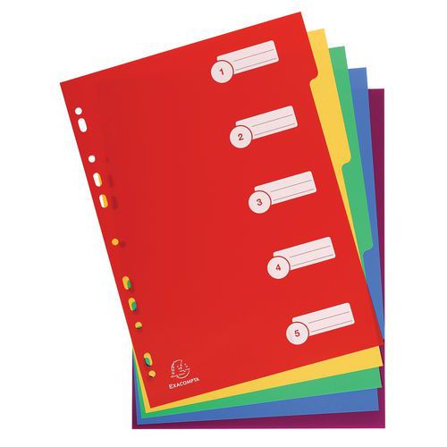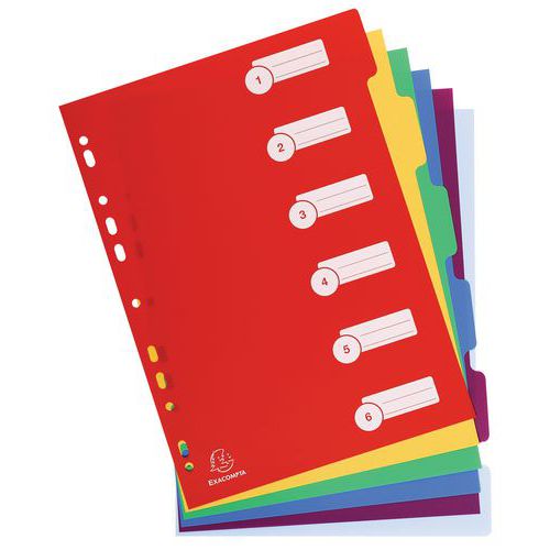 | Varenavn | Exacompta nøytrale skilleark med faner, Antall divisjoner: 6, Farge: Blandede farger |