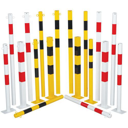 Firkantet stolpe som skal tettes i bakken for å markere kjørefelt, gangveier eller parkeringsplasser. Utendørs bruk mulig takket være galvaniseringen. God synlighet takket være reflekterende striper. Enkel installasjon. TÜV-sertifikat.