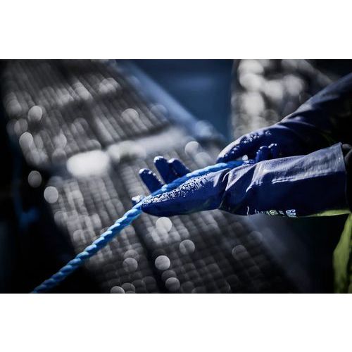 - Nitrilhansker med grov granulering i håndflaten og på fingrene samt mykt bomullsfôr på innsiden.