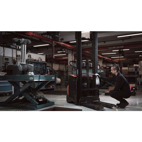 Den gjennomsiktige beholderen med nivåindikator gjør det enkelt å se hvor mye væske som er igjen, slik at oppfylling kan planlegges i tide og arbeidet kan utføres uten avbrudd.