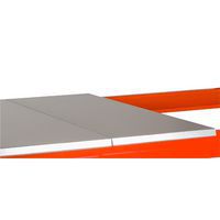 Suppler konfigurasjonen av Flexibel universalhylle: Endestykke og bærebjelke til pallereol med disse galvaniserte hylleplatene som gjør det enkelt å lagre skuffer, bokser og kartonger.