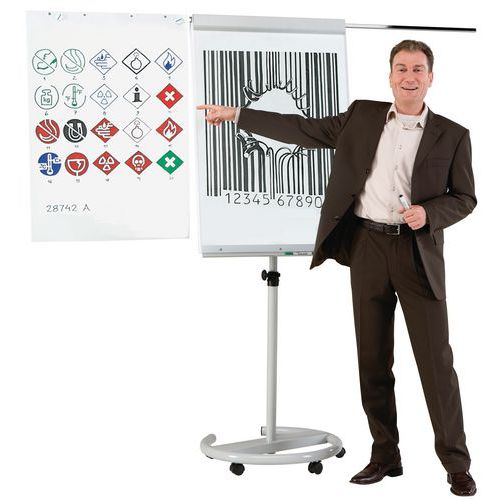 | Varenavn | Flipoverstativ Variant med hjul & armer, Skriveoverflate: Lakkert, Farge: Lysegrå, Minimal høyde: 170 cm |