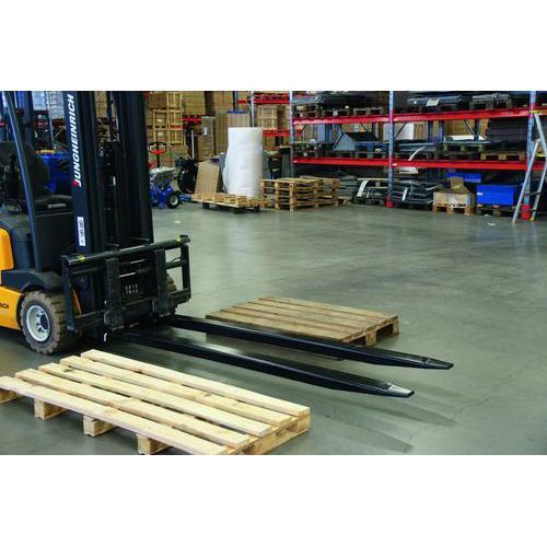 - Kraftige og sikre truckgafler med dekket bunn og åpning for låsing til trucken.