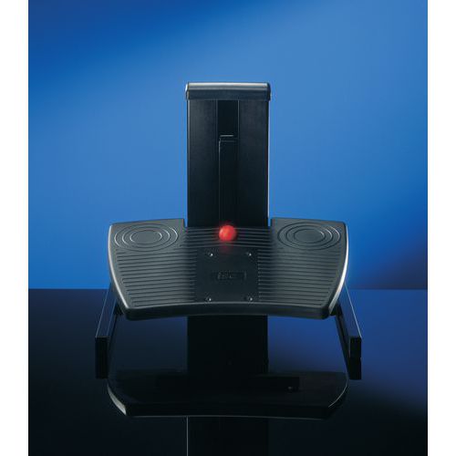 Trykk lett med foten på den røde knappen for å juster ehøyden lett og trinnløst.