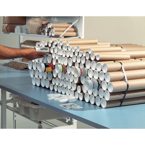 Hurtiglukking via lokk av plast. Åpnes enkelt med en flik. Svært solid papprør. Produsert av 100 % resirkulert kraftpapp.