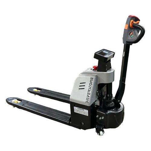 - Praktisk helelektrisk jekketraller/gaffelvogn/motorløftevogn med innebygd vekt.