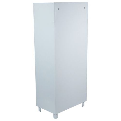 Dører som er forsterket med usynlige hengsler. Optimal åpning på 180°. Hygienisk: ventilasjon øverst og nederst på garderobedørene. 1 skillevegg for rene og skitne klær. 1 hylle, 1 stang og 2 kroker per rom, hull for veggmontering og etikett-holder. Plate, tykkelse : 7/10e Garanti (år) : 10 år