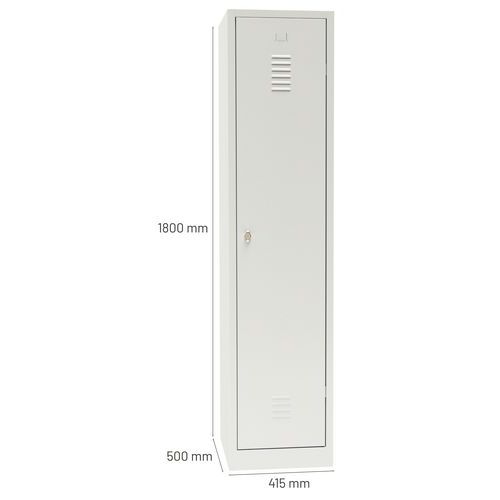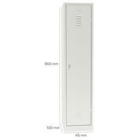 Dører som er forsterket med usynlige hengsler. Optimal åpning på 180°. Hygienisk: ventilasjon øverst og nederst på garderobedørene. 1 skillevegg for rene og skitne klær. 1 hylle, 1 stang og 2 kroker per rom, hull for veggmontering og etikett-holder.