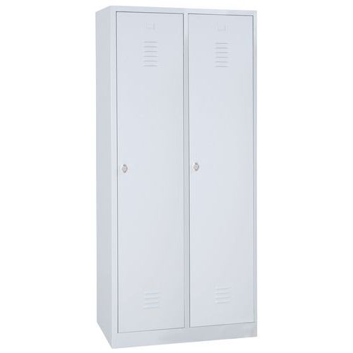 Dører som er forsterket med usynlige hengsler. Optimal åpning på 180°. Hygienisk: ventilasjon øverst og nederst på garderobedørene. 1 skillevegg for rene og skitne klær. 1 hylle, 1 stang og 2 kroker per rom, hull for veggmontering og etikett-holder. Garanti (år) : 10 år Plate, tykkelse : 7/10e