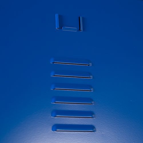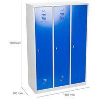 Dører som er forsterket med usynlige hengsler. Optimal åpning på 180°. Hygienisk: ventilasjon øverst og nederst på garderobedørene. 1 skillevegg for rene og skitne klær. 1 hylle, 1 stang og 2 kroker per rom, hull for veggmontering og etikett-holder. Garanti (år) : 10 år Plate, tykkelse : 7/10e