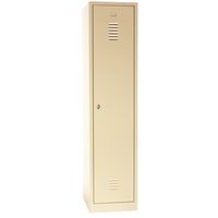 Dører som er forsterket med usynlige hengsler. Optimal åpning på 180°. Hygienisk: ventilasjon øverst og nederst på garderobedørene. 1 skillevegg for rene og skitne klær. 1 hylle, 1 stang og 2 kroker per rom, hull for veggmontering og etikett-holder.