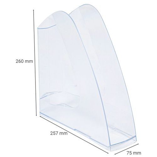 | Varenavn | Gjennomsiktig magasinstativ, Materiale: PVC, Farge: Transparent, Totalbredde: 257 mm, Totaldybde: 75 mm |