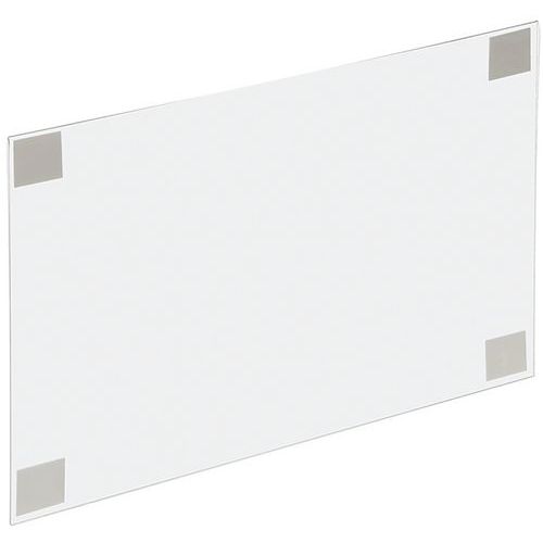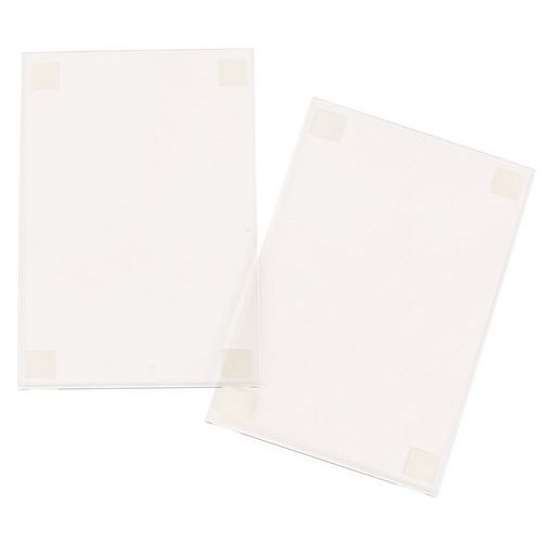 Gjennomsiktig skjermlomme halvstiv med selvklebende flik. Kan brukes i stående eller liggende format. Enkel og rask å feste til enhver glatt overflate. Dokumenter enkle å sette inn via sideåpning.