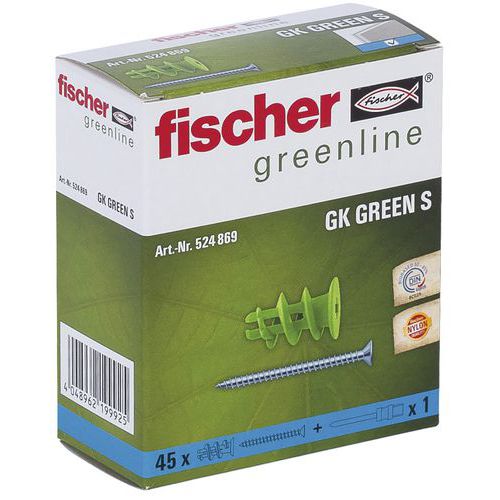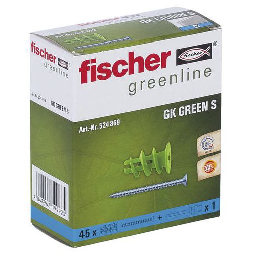 | Varenavn | GK S Grønn plugg, Plugglengde: 22 mm, Materiale: Nylon, Type støtte: Gips |