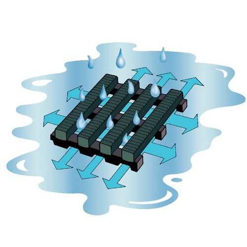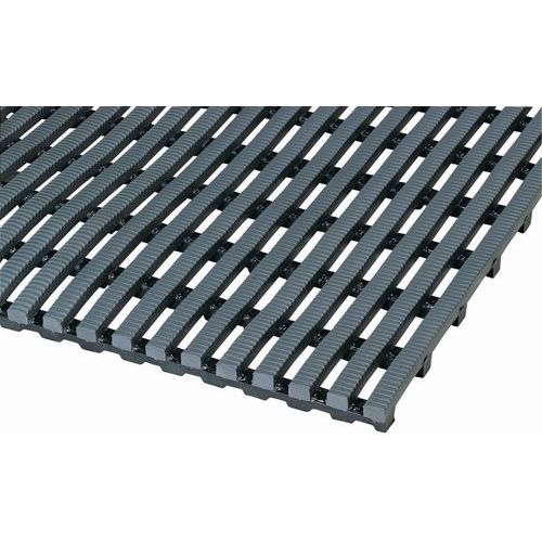 Tåler temperaturer opp til 60 °C. Konvekse profiler, sammenstøpt i gittermønster, PVC. Ideell i bruk ved bassengkanter, i dusjen, omkledningsrom, butikker og under våte forhold. Lett å legge og skjære til. Sklisikker. Hygienisk, ingen porer. Antibakteriell. Lyddempende. Slitesterk. 4-veis selvdrenering. Bestilles i hele meter!