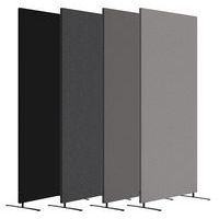 - Hver skjerm har en tekstilkledd overflate, en stabil ramme i massivt tre og en lydabsorberende kjerne.