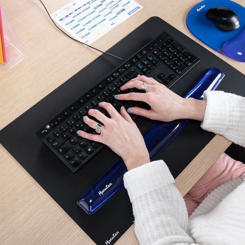 - Håndleddsstøtte i mykt gelmateriale som gir avlastning og ekstra komfort ved arbeid foran PC.