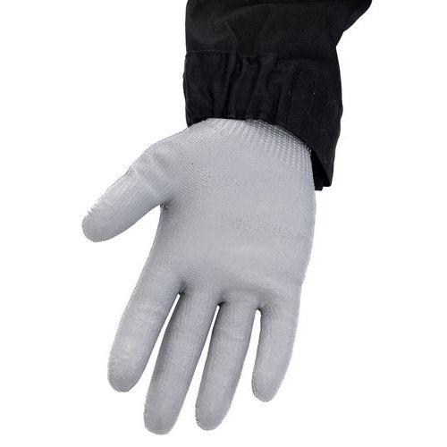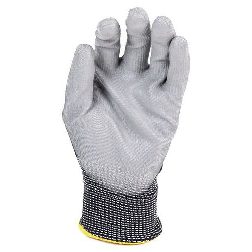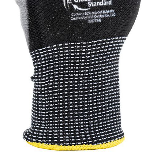 Kuttsikre hansker nivå C. Fremstilt av resirkulerte plastflasker. Sømløs strikket underlag for ekstra komfort. Polyuretanbelegg på håndflate og fingertupper sørger for utmerket slitasjebestandighet. Kompatibilitet med trykkskjermer. Kan håndteres presist takket være belegg. Strikket håndledd hindrer skitt og partikler i å trenge inn i hansken. Vaskbar for en lang levetid og en mindre erstatningskostnad. Tykkelse 13.