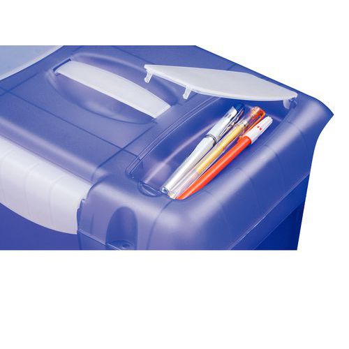 | Varenavn | Hengemappeboks Class'n Go, Farge: Blå, Modell: Hennemappeveske Class’n Go, Totalbredde: 256 mm |