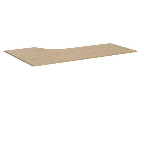 - Den buede bordplaten er 19 mm tykk og laget av slitesterkt laminat der farge og struktur ikke påvirkes av sollys eller regelmessig avtørking.