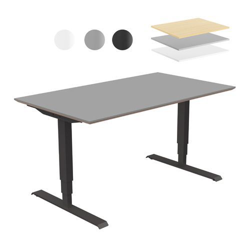 - Funksjonelt og slitesterkt skrivebord, tilpasset de vanligste behovene innen kontorarbeid. Den rektangulære bordplaten har avfaset kant og er 25 mm tykk. Den er laget av MDF-plate belagt med melanin. Farge og struktur påvirkes ikke av sollys eller regelmessig avtørking. Stabilt og stillegående elektrisk understell i moderne design. Lagd av sølvlakkert stål. Leveres umontert. Maksimal belastning: 100 kg.
