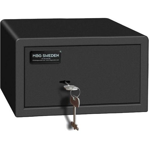 Hotellskap/verdiskap fra MBG Sweden er en kompakt og sikker løsning for mindre verdisaker. Skapet er laget av 2 mm stålplate med en 5 mm tykk dør for ekstra beskyttelse. Det passer perfekt for hotellrom, kontor eller hjemmet og kan enkelt plasseres i et skap eller en bokhylle. Utstyrt med en motorisert kodelås (MBG 20 finnes med både kode- og nøkkellås) samt en mekanisk nøkkellås for nødsituasjoner, gir skapet fleksibilitet og trygghet. Kodelåsen kan programmeres med både master- og brukerkode og drives av batterier som enkelt kan skiftes ut Skapet har plass til smykker, dokumenter, pass eller mindre elektronikk. For enkel forankring er hotellskapet/verdiskapet forboret i bunnen og bakveggen (bolter/skruer medfølger ikke).