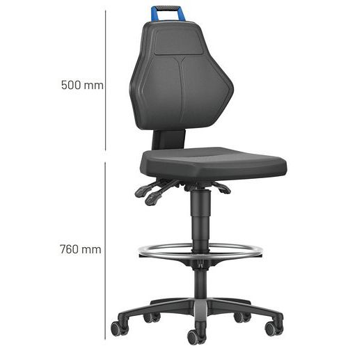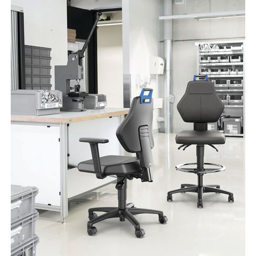 | Varenavn | Høy verkstedstol på selvlåsende hjul, Armlener: nei, Type fot: Hjul, Sete, materiale: Polyuretan |