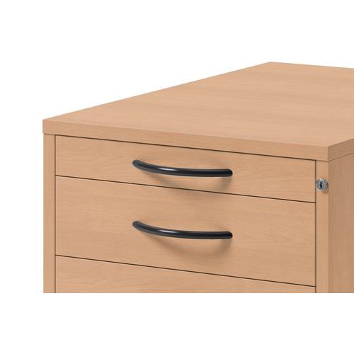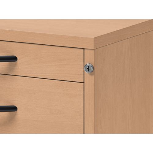 - Klassisk skuffeseksjon utstyrt med sentrallås og 4 lett-rullende hjul, hvorav 2 er låsbare.