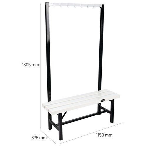 Hvit PVC-benk med kroker – må monteres - Manutan Expert