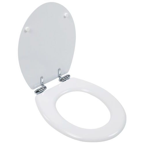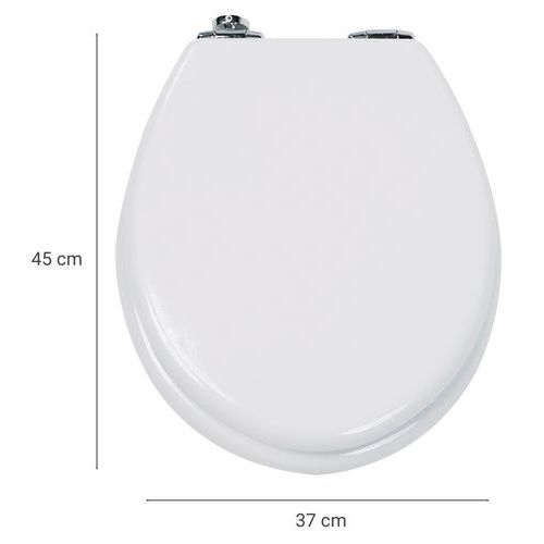 Hvitt toalettsete i MDF, Lengder: 45 cm, Bredde: 37 cm, Høyde: 6 cm, Materialer: MDF, Farge: Hvit