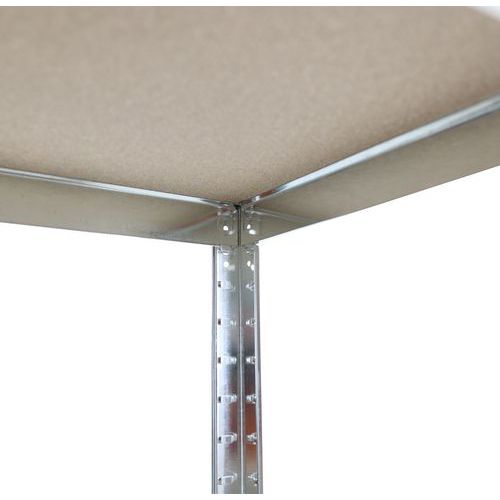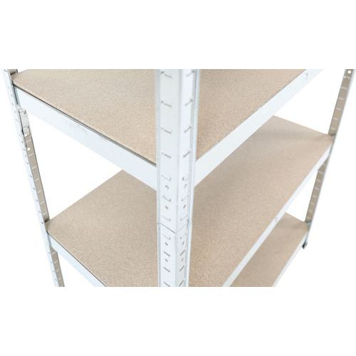 Den stabile og bestandige hyllen Budget II er et økonomisk alternativ for deg som trenger en fleksibel verkstedshylle. Korte stolper for forskjellige konfigurasjonsmuligheter - perfekt for lager, verksted, garasje, redskapsskjul og så videre. Sammensetning: 4 stolper, 5 sponplater, 1 monteringsanvisning - monteres uten verktøy.
