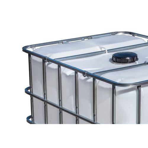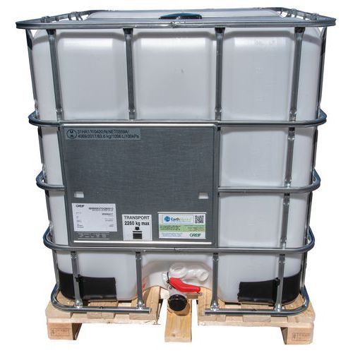 | Varenavn | IBC-beholder med trepall og stålgitter 1000 L, Volum: 1000 L, Totalhøyde: 1168 mm, Totalbredde: 1000 mm |