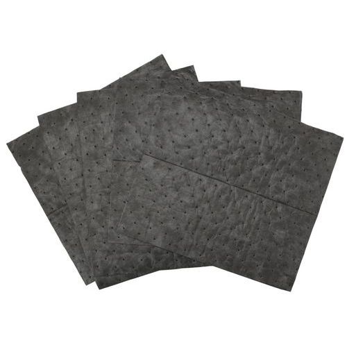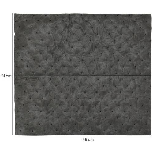 Ikasorb Universal Standard Medium-absorbent for høy slitestyrke og middels rask absorpsjon. Perfekt for alle typer væsker som olje, vann, løsemidler, kjemikalier og skjærevæsker. SM/SMS-teknologi – spunnet overflatelag (én side på SM, to sider på SMS) for maksimal slitestyrke og lofrihet. Forsterket overside (SM) og både over- og underside (SMS) gjør at den tåler å stå, gå og kjøre på. Varmepreget for å holde lagene sammen og forhindre at absorbenten faller fra hverandre. 100 % fri for silikon.